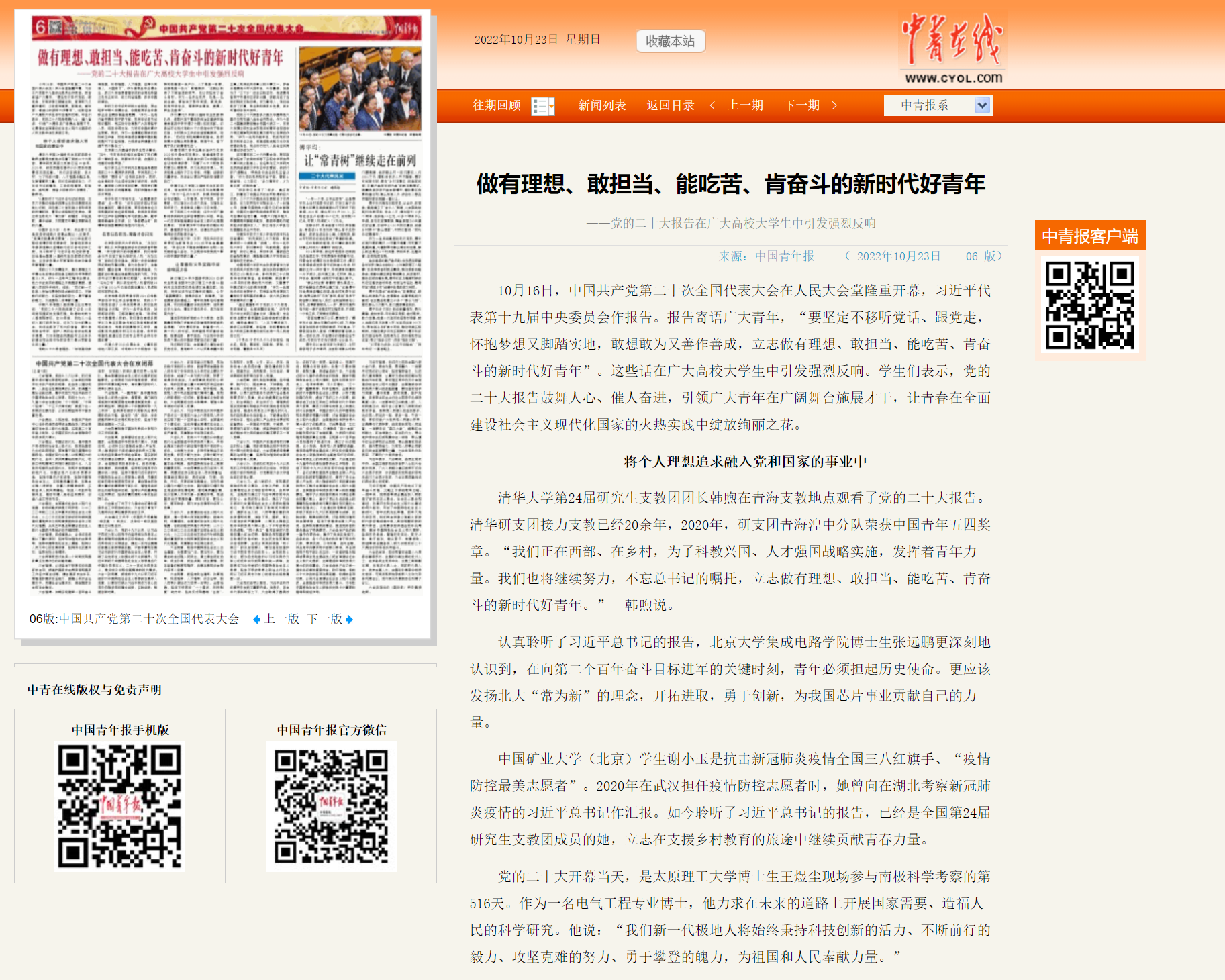 (相关链接:http://zqb.cyol.com/html/2022-10/23/nw.D110000zgqnb_20221023_1-06.htm