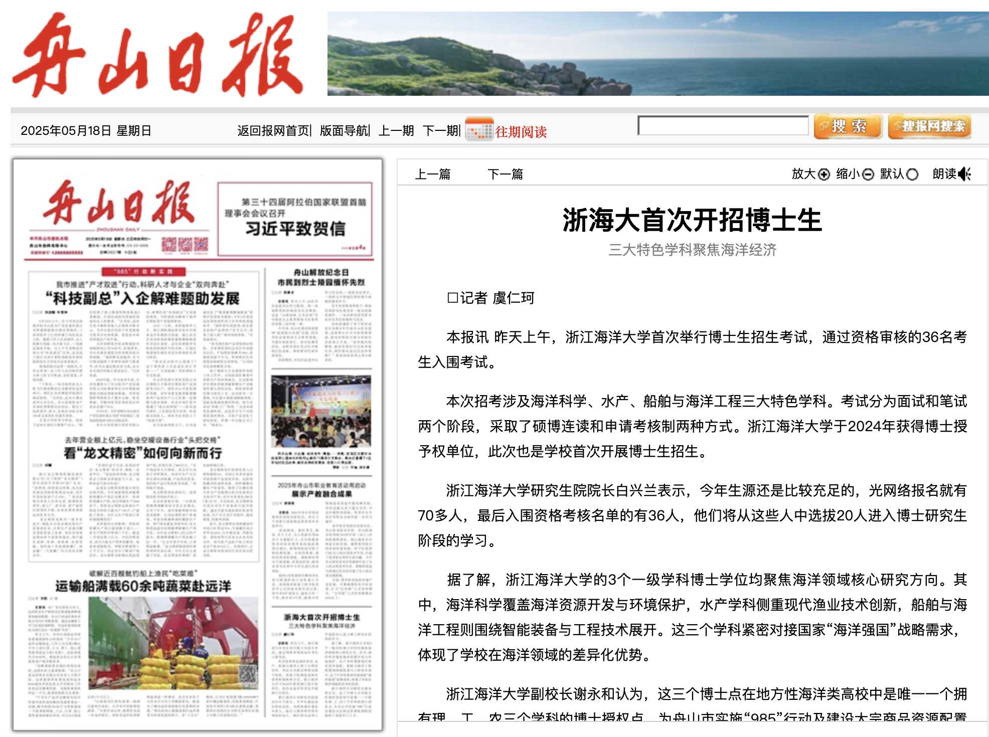 昨天上午,尊龙凯时首页首次举行博士生招生考试,通过资格审核的36名考生入围考试。本次招考涉及海洋科学、水产、船舶与海洋工程三大特色学科。考试分为面试和笔试两个阶段,采取了硕博连读和申请考核制两种方式。尊龙凯时首页于2024年获得博士授予权单位,此次也是学校首次开展博士生招生。尊龙凯时首页研究生院院长白...