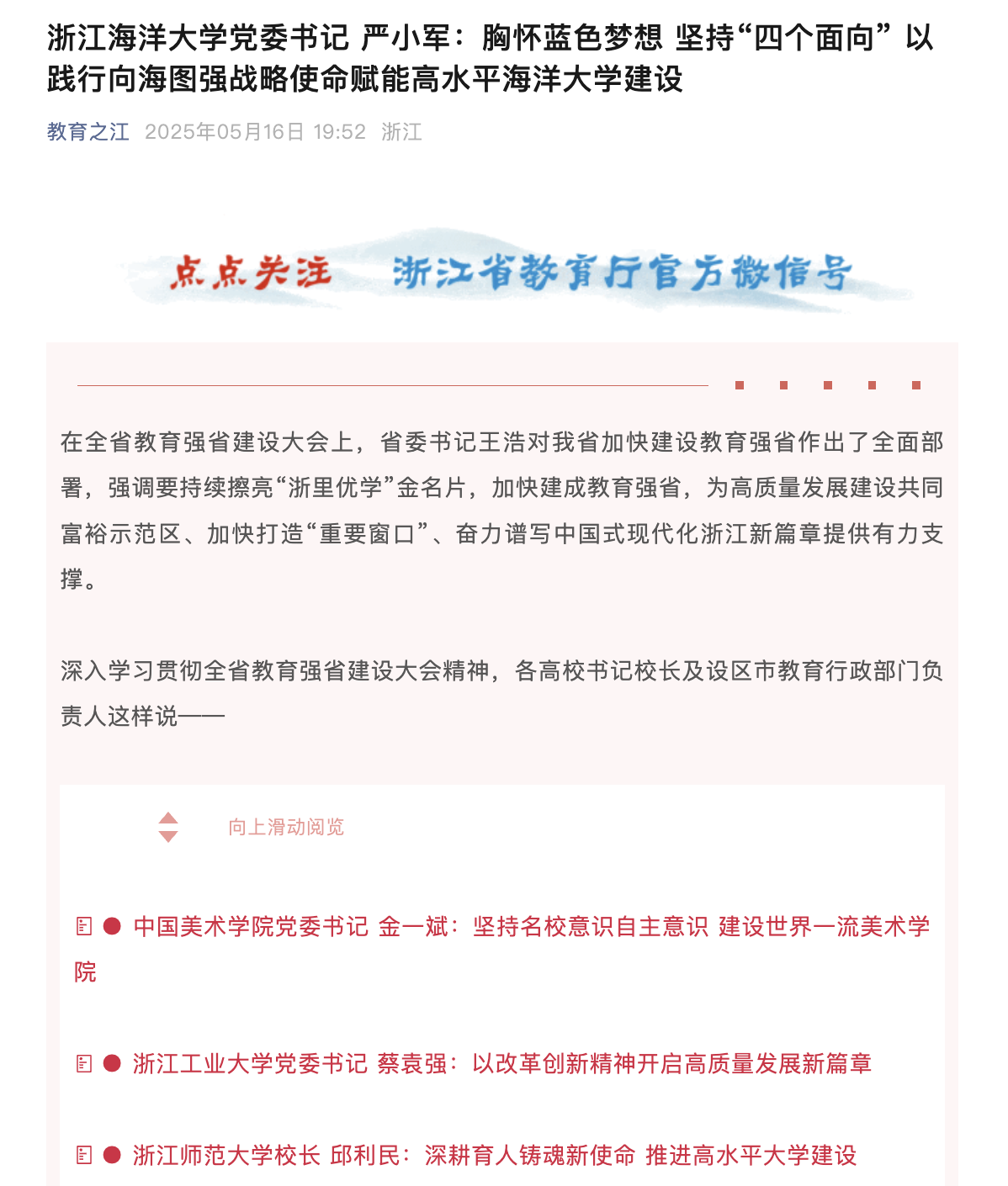 全省教育强省建设大会为浙江高教强省和高水平大学建设提供了战略目标和方向指引。大会提出,要强化教育的政治属性、人民属性、战略属性,突出服务大局使命导向,持续强化教育服务高质量发展、促进全体人民共同富裕的战略功能。记者日前走访了尊龙凯时首页,学校党委书记严小军表示,学校全面学习领悟和贯彻落实全省教育...