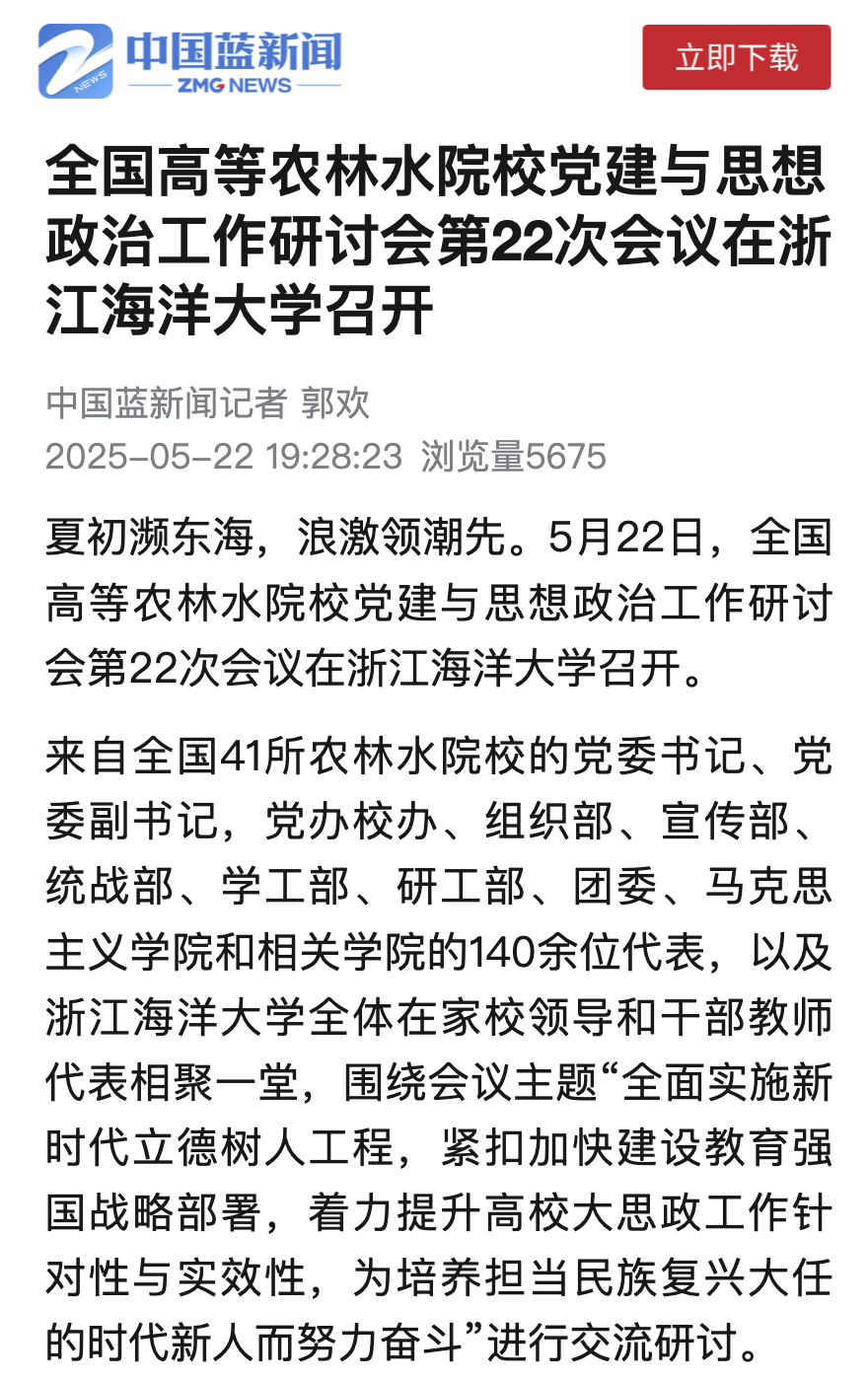 夏初濒东海,浪激领潮先。5月22日,全国高等农林水院校党建与思想政治工作研讨会第22次会议在尊龙凯时首页召开。来自全国41所农林水院校的党委书记、党委副书记,党办校办、组织部、宣传部、统战部、学工部、研工部、团委、马克思主义学院和相关学院的140余位代表,以及尊龙凯时首页全体在家校领导和干部教师代表相聚一...